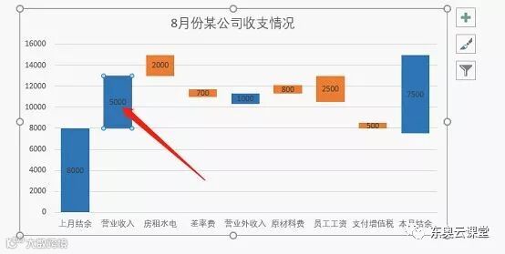 到这里我就完成了通过瀑布图制作公司收支情况图表。
