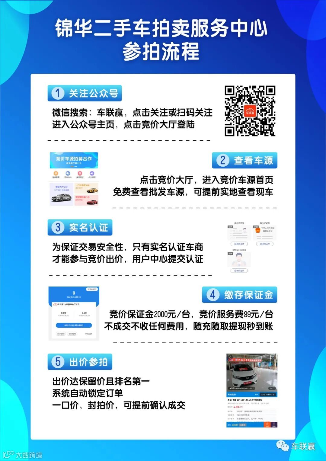 接下来,锦华市场将充分发挥好二手车市场方的传统优势,及自身的地理区位优势,锦华二手车市场,借助车联赢竞价拍卖服务功能,及车商端内网车源共享等系统服务,拓展多元应用场景,在促进车源多元展示的同时,搭建异地流通新渠道;