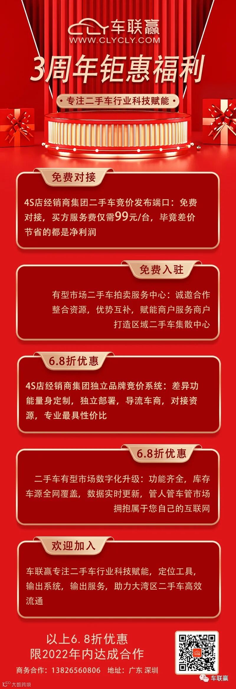 热烈祝贺:由锦华二手车市场方携手车联赢共同打造的:锦华二手车拍卖服务中心投入运营,进入试业阶段,我们秉承真实车况,信息公开透明原则,依托周边区域资源优势及市场赋能商户经营需要,顺应行业发展,促进本地车源的异地流通,倾力打造深圳西部最大的二手车线上线下交易集散中心。