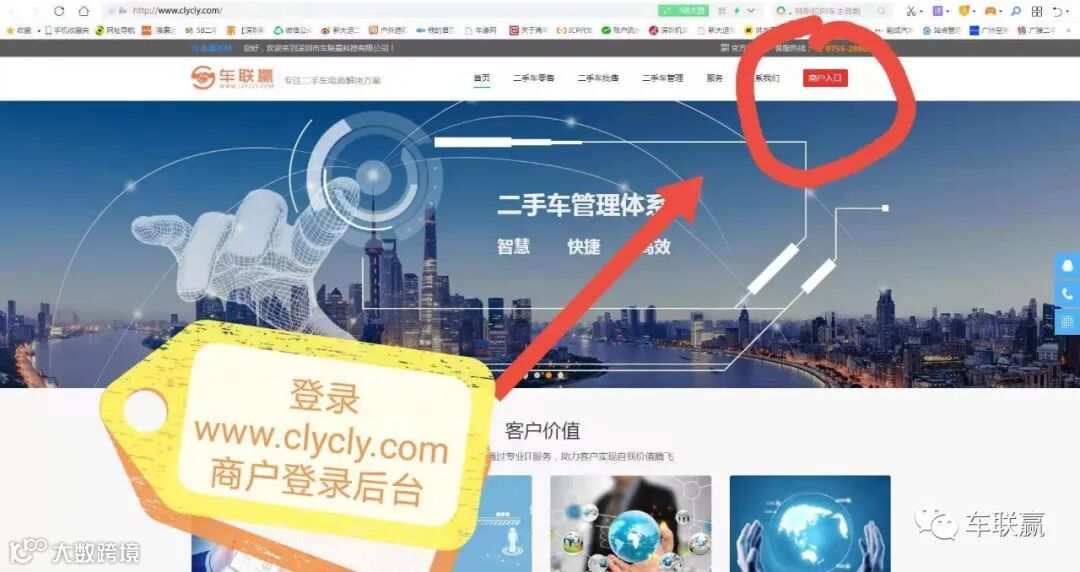 登陆车联赢车商端管理后台,点击车商登陆端口