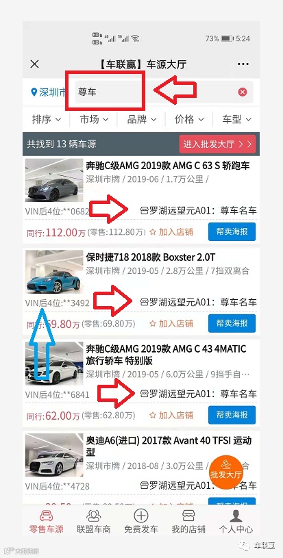 5)提升规模:所有车源可一键加入本店,可调价,提升店铺规模;