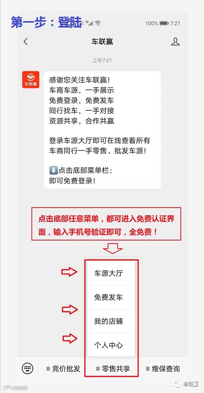 ▽ 关注车联赢公众号,点击底部菜单即可免费登录