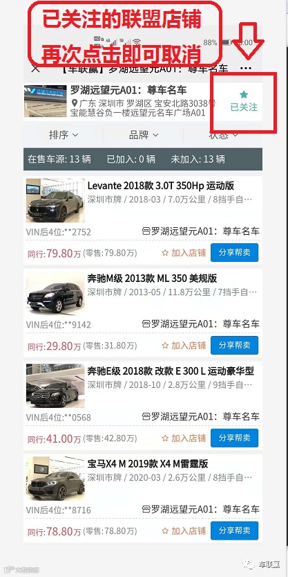 4)车商联盟:熟悉车商进店关注,库存即实时共享,合作更方便;