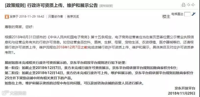 京东已发布公告,明确要求必须上传营业执照和相关经营许可证,否则,下架相关所有商品。相信各平台将会陆续跟进!
