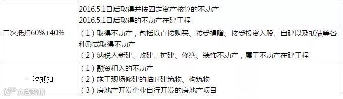 也就是在面对此类问题时,首先要看这个固定资产到底是动产还是不动产,如果是不动产看看是不是2016年5月1日之后购入或发生的。如果同时满足,那么就是六四抵扣,购入时抵扣60%,一年以后抵扣剩下的40%。