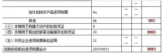 业务1对应抵扣凭证为增值税专用发票,进项税额0.9万元;业务2到5对应其他抵扣凭证,进项税额:900+(800+50)÷(1+9%)×9%+240÷(1+9%)×9%+103÷(1+3%)×3%=993(元);