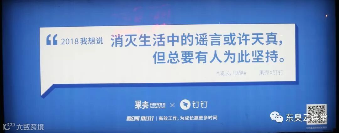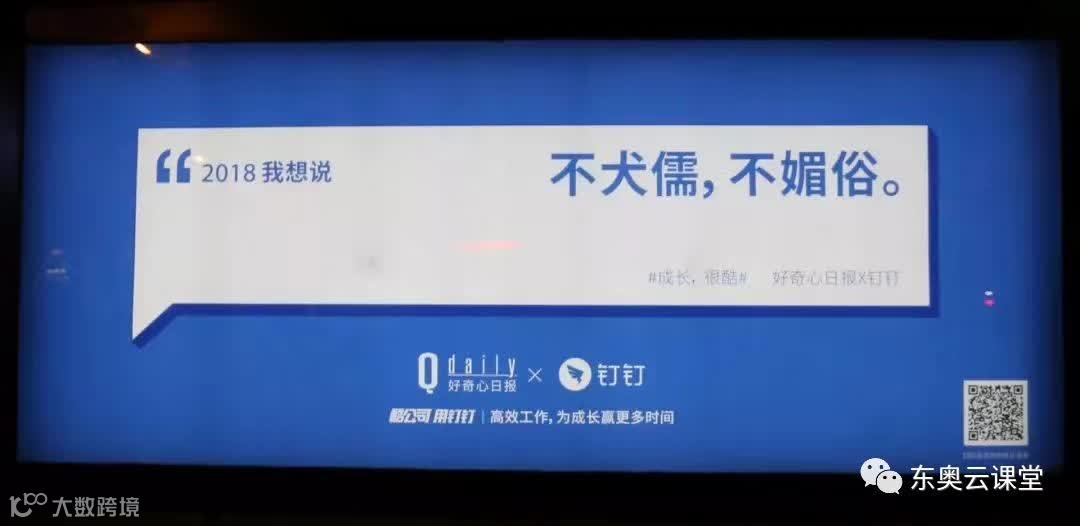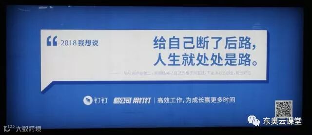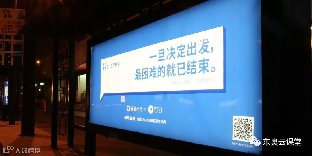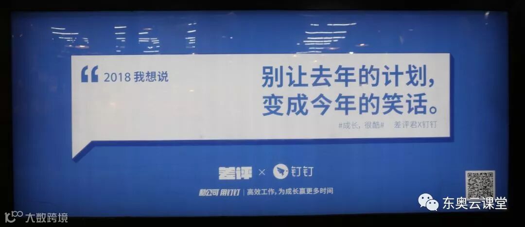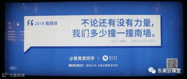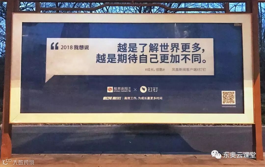 然而,就是在这个“人一励志,上帝就发笑”的风气下,马云的阿里巴巴钉钉却反其道而行之,最近在候车亭投放了一组主题为“成长,很酷”的公交站台广告,联合了60多个品牌、媒体、自媒体展开了一场对于2018年的集体对话,这60余句新年寄语,打动了无数正在奋斗中的人。