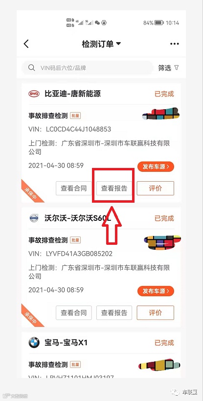 ▽ 车联赢车商端,如何查看报告,进入详情页即可