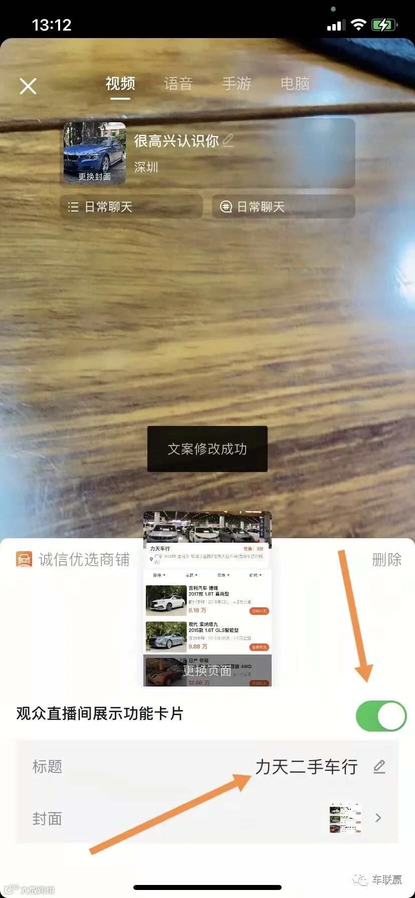5:可点击标题修改为本车行名字,或更改店铺直播首图美化;