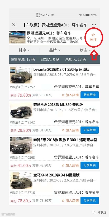 第四步:可同步关注多家车商店铺哦,不限地区,