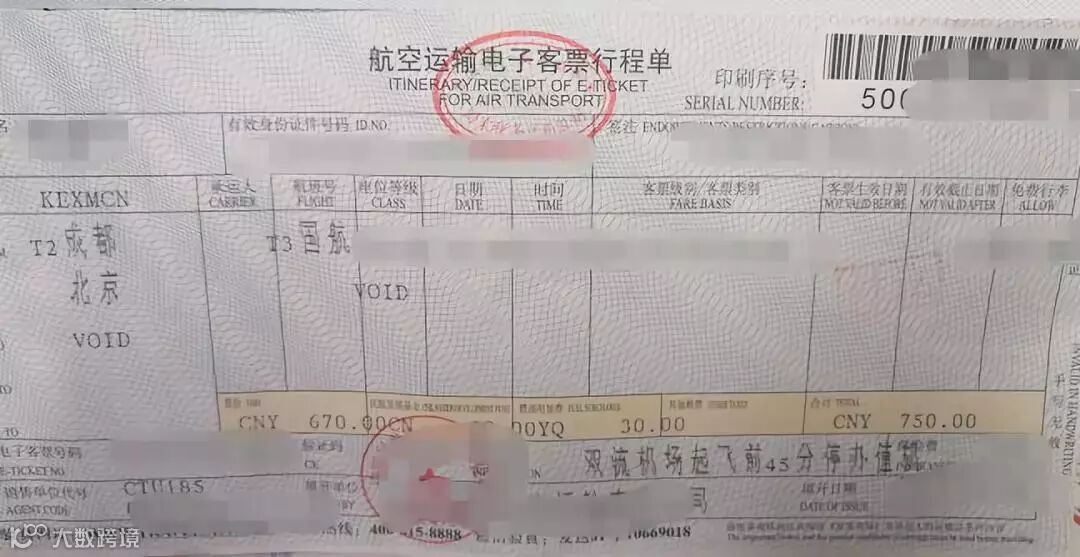 9.航空运输电子客票行程单「维持不变」