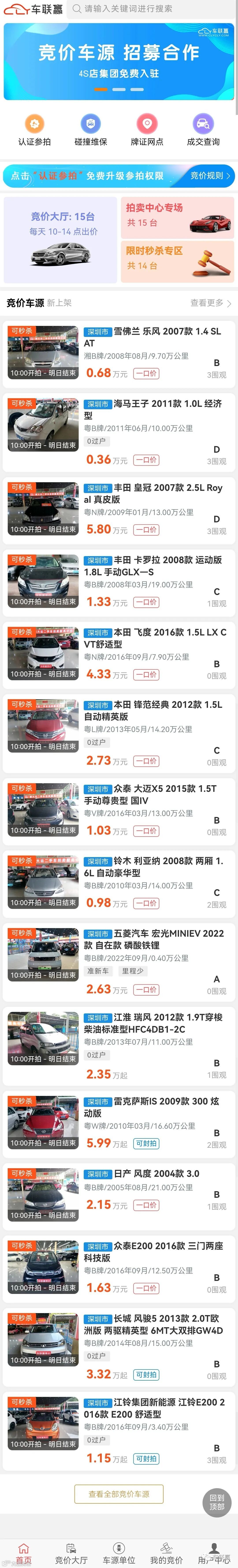 车联赢竞价大厅批发车源持续更新,全网超低服务费,不分价位仅需100元/台;