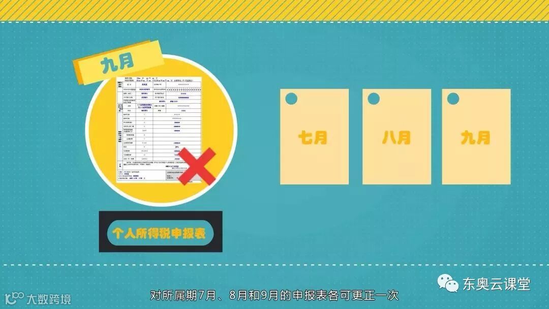 例如:发现所属期为9月的个人所得税申报表有错误,在10月31日前可无限次更正,对所属期6月、7月和8月的申报表可各更正一次。