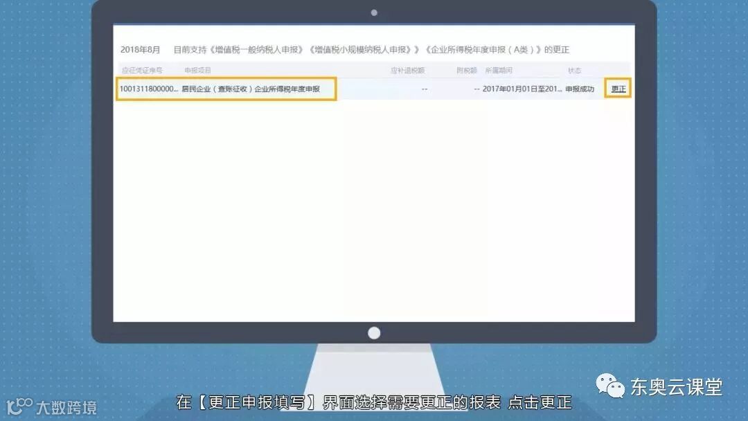 在【更正申报填写】界面选择需要更正的报表,点击更正。