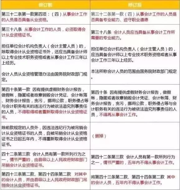 2017年会计法变更,加强了对会计从业人员的法律约束,将“从事会计工作的人员是否具备专业能力、遵守职业道德”明确列入了法律监督范围。