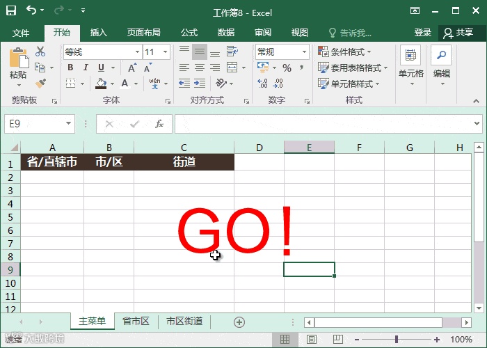 这里我将信息分别写到了3个工作簿中前面一个是主表格后面分别是【省市区】后面是【市区街道】,这是为了更好的将信息分类排序好,当然,你也可以将信息全部记录在第二个工作簿中,方法与上面都是类似的,大家看我演示就好了。记住二级是【=INDIRECT(A2)】,三级是【=INDIRECT(B2)】。
