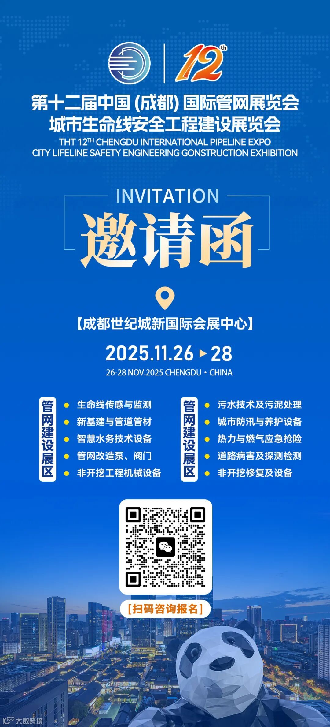 2025第十二届中国(成都)国际管网展览会将于11月26-28日在成都世纪城新国际会展中心隆重召开!作为一场集展示、交流、合作于一体的行业盛会,武汉管网展将为全行业带来新的商机和合作机会。届时,我们将竭诚为您提供周到细致的服务,确保您参展、参会、参观的每一个环节都能够获得满意的体验和收获。