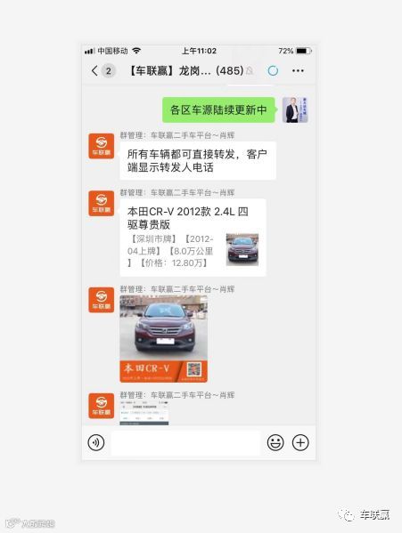 只要你愿意,平台所有车源都可以随意转发分享,默认为分享人的联系方式,没车也会有车卖,有车传上来,同行帮你卖,