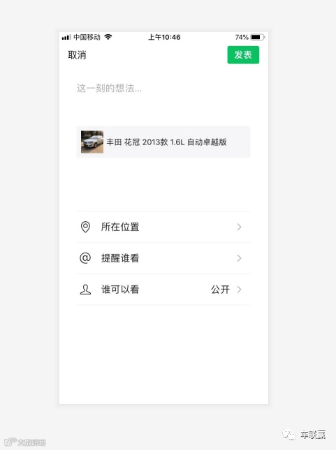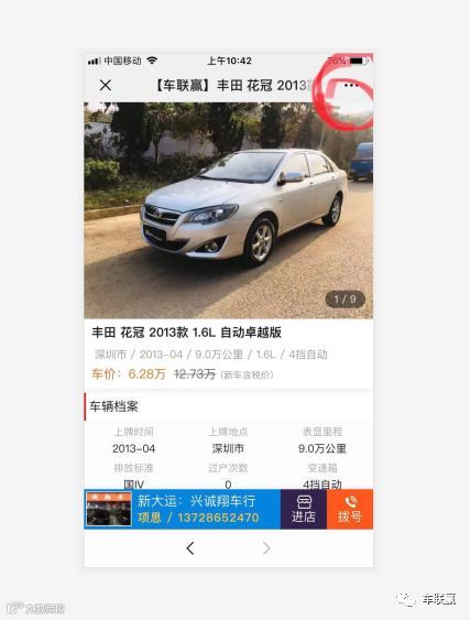 2:任意车辆点开车辆图片,点击右上角。。。,都可直接转发微信好友及朋友圈转发,转发后也默认自己的联系方式了,进自己店铺;