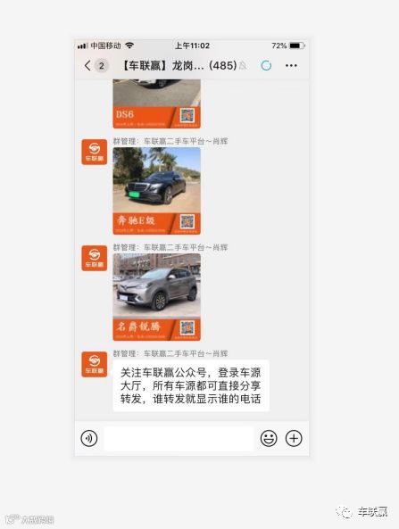 扫码关注:车联赢,登录车源大厅即可,发布车辆需要认证店铺,车商联合,资源共享,合作共赢,让车商,同行,充分互动起来,抱团取暖,相互卖车,您觉得好用,就让更多同行关注进来吧!