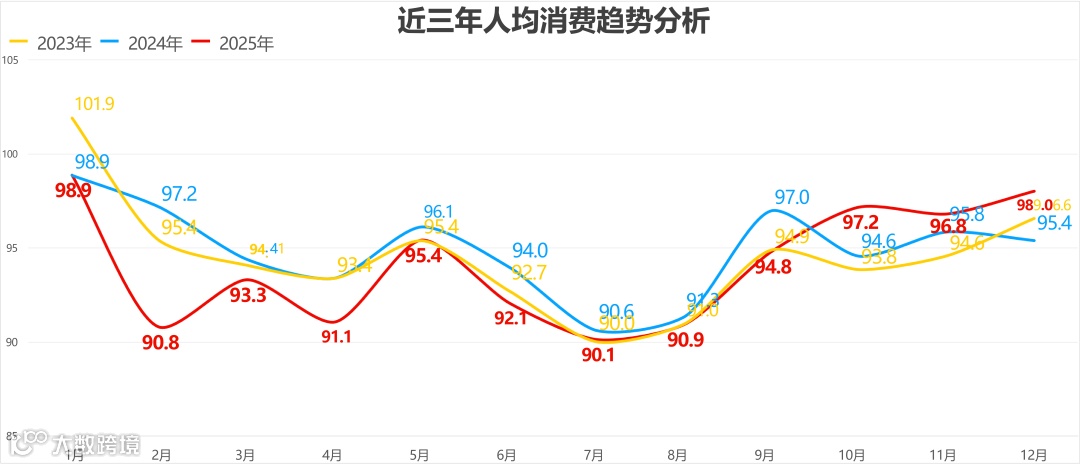 客单:整体趋于稳定,2023-2025 年波动幅度小于 5%,7 月为年度谷值(暑期低价促销),1 月为传统高峰(春节消费);2025 年四季度客单连续高于前两年同期,年末消费意愿带动客单价小幅回暖。