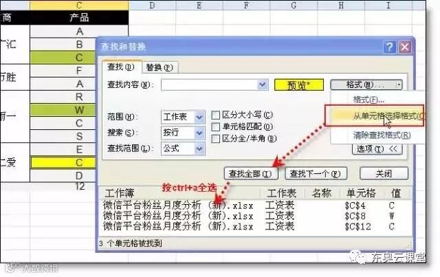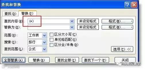 选取数据区域,CTRL+F打开查找窗口,并进行如下设置