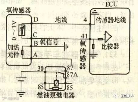 是检测尾气中的含氧量,来确定混合气的浓度,并反馈给ECU。电喷车为获得高排气净化率,降低排气中(CO)一氧化碳、(HC)碳氢化合物和(NOx)氮氧化合物成份,必须利用三元催化器。但为了能有效地使用三元催化器,必须精确地控制空燃比,使它始终接近理论空燃比。催化器通常装在排气歧管与消声器之间。氧传感器具有一种特性,在理论空燃比(14.7:1)附近它输出的电压有突变。这种特性被用来检测排气中氧气的浓度并反馈给电脑,以控制空燃比。当实际空燃比变高,在排气中氧气的浓度增加而氧传感器把混合气稀的状态(小电动势:O伏)通知ECU。当空燃比比理论空燃比低时,在排气中氧气的浓度降低,而氧传感器的状态(大电动势:1伏)通知(ECU)电脑。