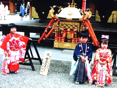 5月5日男孩节 节日当天,有儿子的家庭,门前都悬挂“鲤鱼旗”,表示鲤鱼跳龙门的意思。鲤鱼旗,用布匹或绸缎裁成“空心鲤鱼”,分黑、红和青蓝三种颜色。黑,代表父亲;红,代表母亲;青蓝代表男孩自己。家里有几个男孩儿,门口就悬挂几面青蓝旗。青蓝旗子越多,表示这家的哥们儿就越多。在日本人心目中,鲤鱼象征力量和勇气。 11月15日“七五三”儿童节 在日本习俗里,三岁、五岁和七岁是小朋友特别幸运的三个年纪,所以每年的这一天,会专门为这三个年纪的孩子热闹地庆祝一番。 这一天,小朋友会穿上最好的传统和服,还会背上一个画了松树、乌龟或鹤等图案的小纸袋,纸袋里装满了父母买的糖果和玩具。穿戴整齐后,父母会带小朋友上神社,祈求并感谢神明给小朋友带来健康和快乐。
