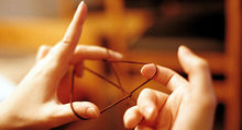 | 翻花绳 | 翻花绳,汉族民间流传的儿童游戏。在中国不同的地域,有不同的称法,如线翻花、翻花鼓、挑绷绷、解股等等。这是一种利用绳子玩的玩意,只需灵巧的手指,就可翻转出许多的花样。在马来西亚,翻绳用的绳子一般是橡胶圈(橡皮筋,河南东南部就把该游戏称为”开胶“),国外的材料则有毛线、麻线、呢绒绳或棉纱绳等。 |