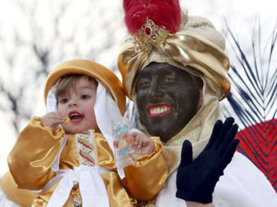 为庆祝这一节日,在1月5日傍晚、6日早晨,西班牙各地都有花车游行。花车上“三个国王”不断撒出各式糖果来慰问儿童。当游行队伍到达市政府或区政府的大门口时,凡能坐在国王腿上的儿童都能得到一件精美的礼品,得到礼品的孩子也必须向国王保证一定会好好学习。