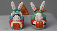 | 兔儿爷 | 兔儿爷是北京市的汉族传统手工艺品,属于中秋应节应令的儿童玩具。 人们按照月宫里有嫦娥玉兔的说法,把玉兔进一步艺术化、人格化,乃至神化之后,用泥巴塑造成各种不同形式的兔儿爷。 |