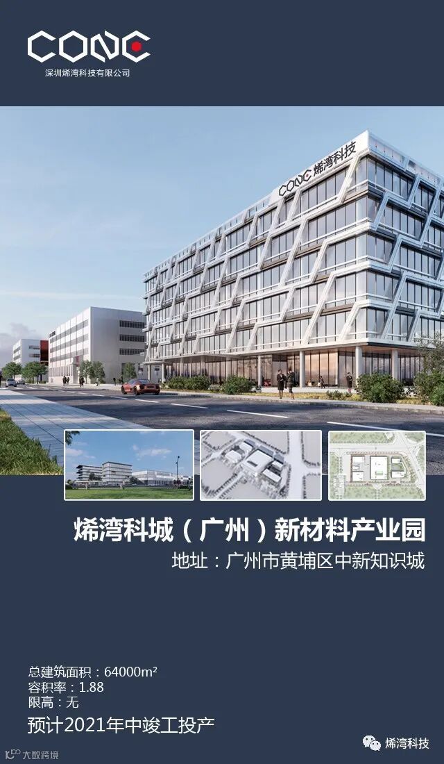 烯湾科城落位于广州开发区中新知识城,用地面积3.2万平方米,毗邻广州地铁14号线和穗莞深城际铁路。园区定位高端,地理位置优越,上下游产业集聚,将有力支撑烯湾科技做大做强,实现跨越式发展。