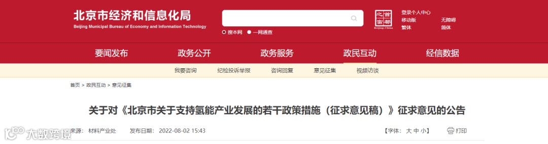 8月2日,北京市经信局印发了《北京市关于支持氢能产业发展的若干政策措施(征求意见稿)》(以下简称“《意见稿》”)。
