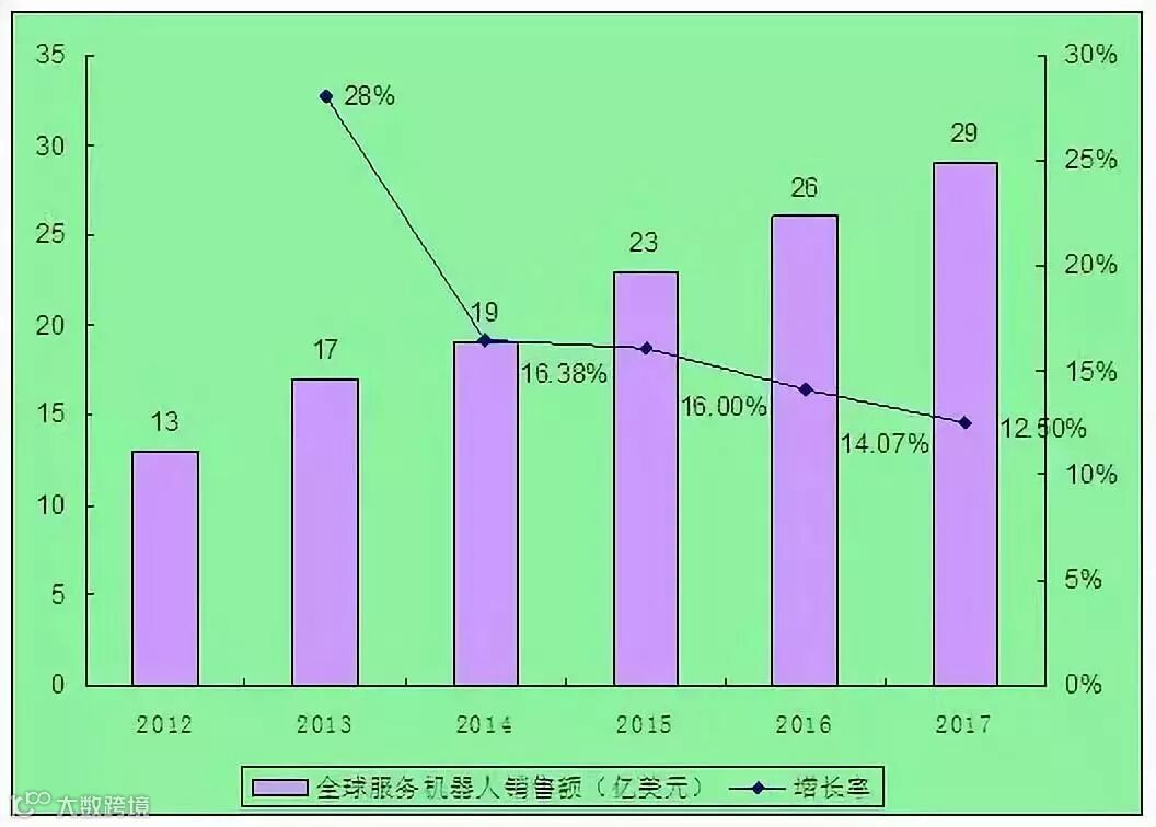 图表:2011-2017年全球服务机器人销售额及其增长率
