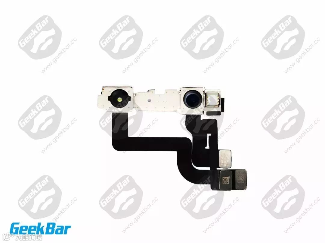 iPhone XR 使用第一代的原深感摄像头模组,从左到右依次是红外相机、前置相机、点阵投影仪,用于面容 ID、景深自拍、Animoji 等功能。