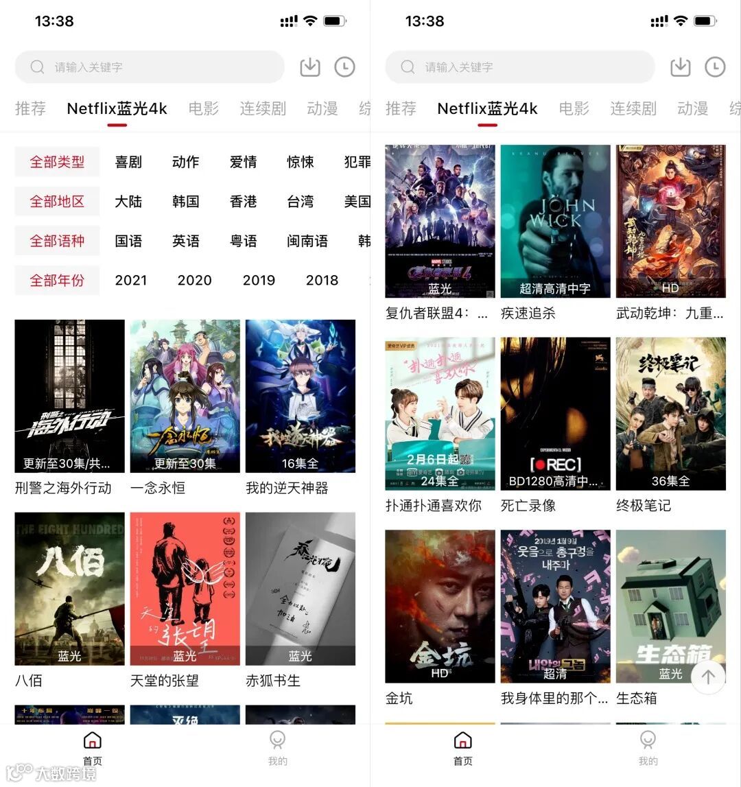 下载链接后台获取,苹果系统需要邀请码,大伙要耐心一点。软件主界面如上图所示,跟之前分享的迪迪影视一样的界面。最主要的就是它的资源,有专门的奈飞4K资源专区。质量相当的高!