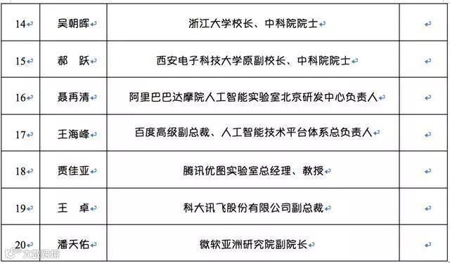 教育部人工智能科技创新专家组咨询组专家名单