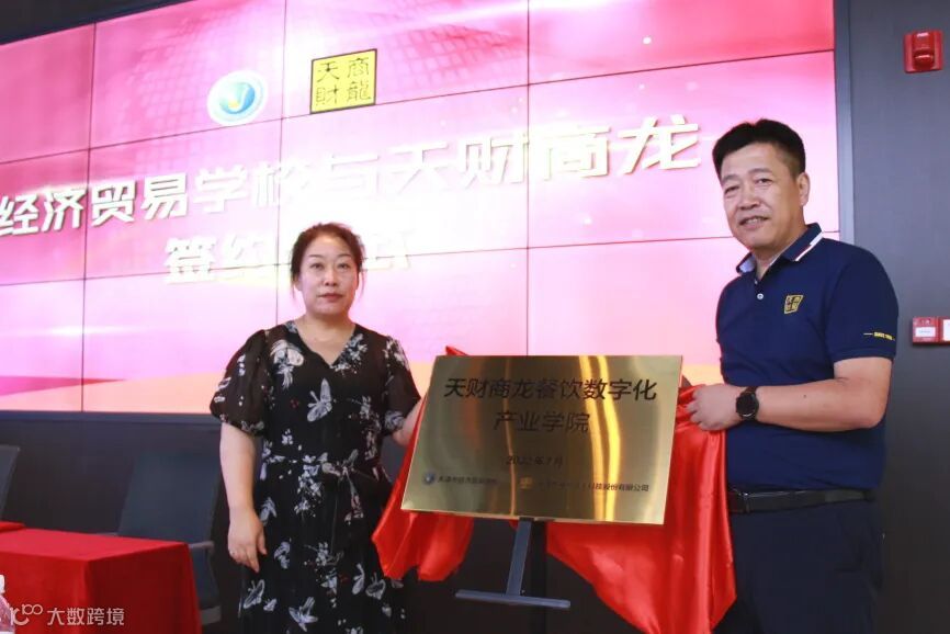 随后,天津经济贸易学校李燕副校长与天财商龙董事长丁总共同进行揭牌仪式,成功落地“天财商龙数字化产业学院”。