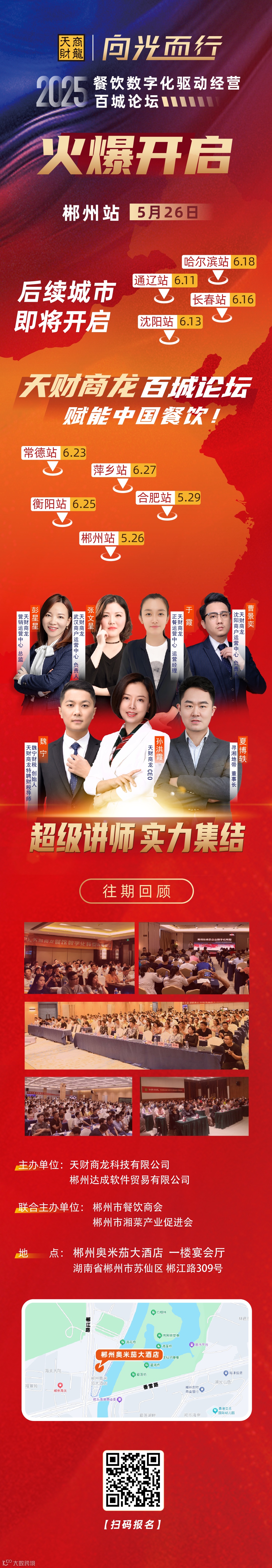 而正在全国火热进行中的天财商龙2025百城论坛,将深度拆解数字化场景,为行业提供从方法论到工具的全链路解决方案,为餐饮经营指明未来航向,引领行业扬帆远航!