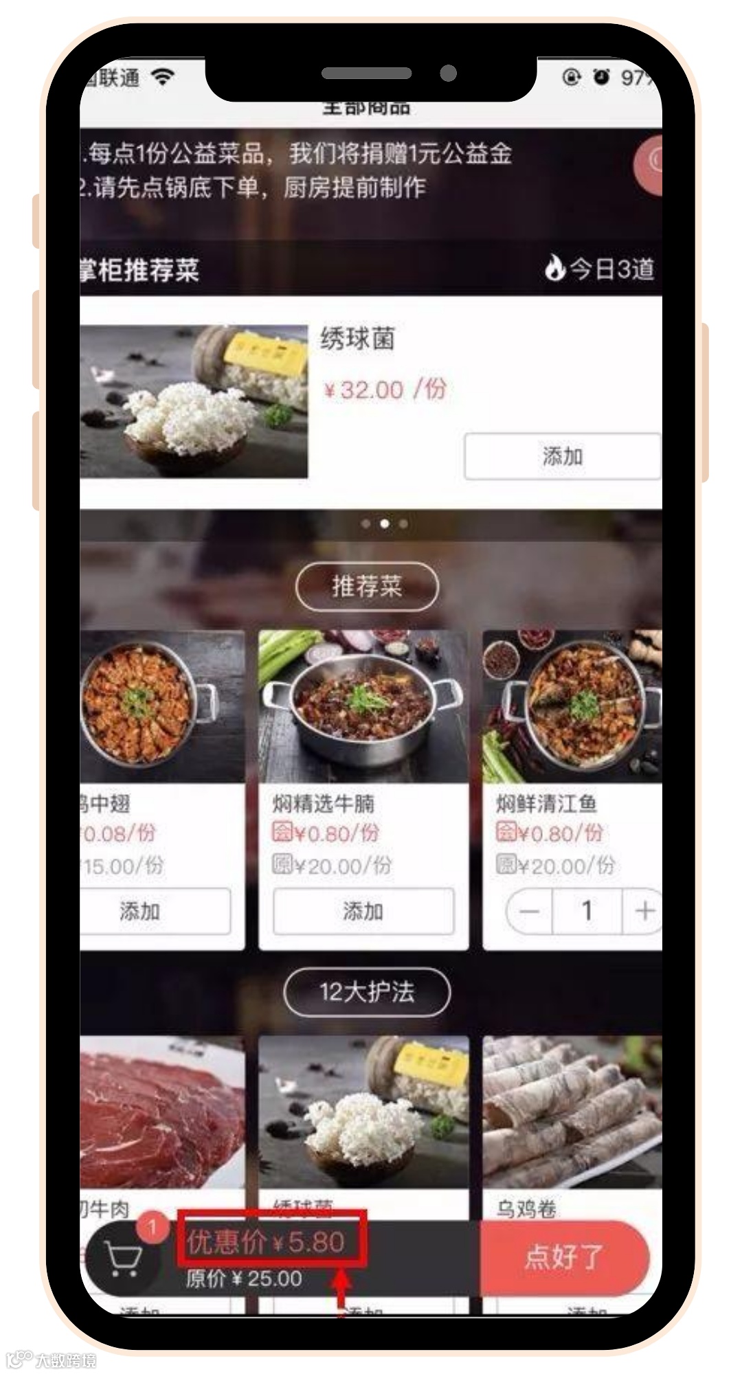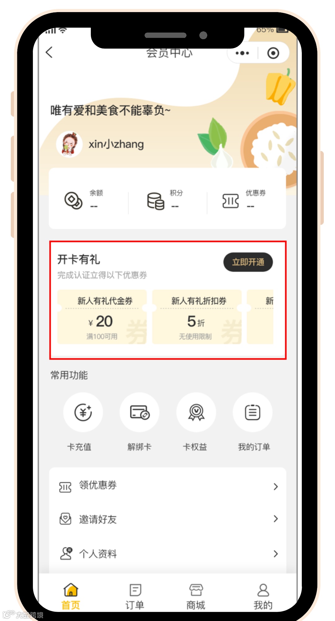 对于商家来讲,在点餐页多了卡升级的曝光入口,促进升级转化,对顾客来讲,在点餐过程中就能一目了然自己当前的会员等级和卡升级方式。