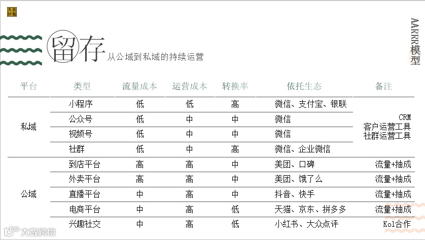 留存环节,是需要餐饮企业持续投入精力的。从公域流量沉淀用户,实现私域流量池的搭建是需要持续运营的。这个期间,餐饮企业需要关注不同平台的转化率,目前各个平台均已形成了相对稳定且个性鲜明的用户群体,因此餐饮企业需要将平台用户的特点与自身客群特征进行比对,这样才能从众多平台中筛选出适合花费大力气运营的平台。