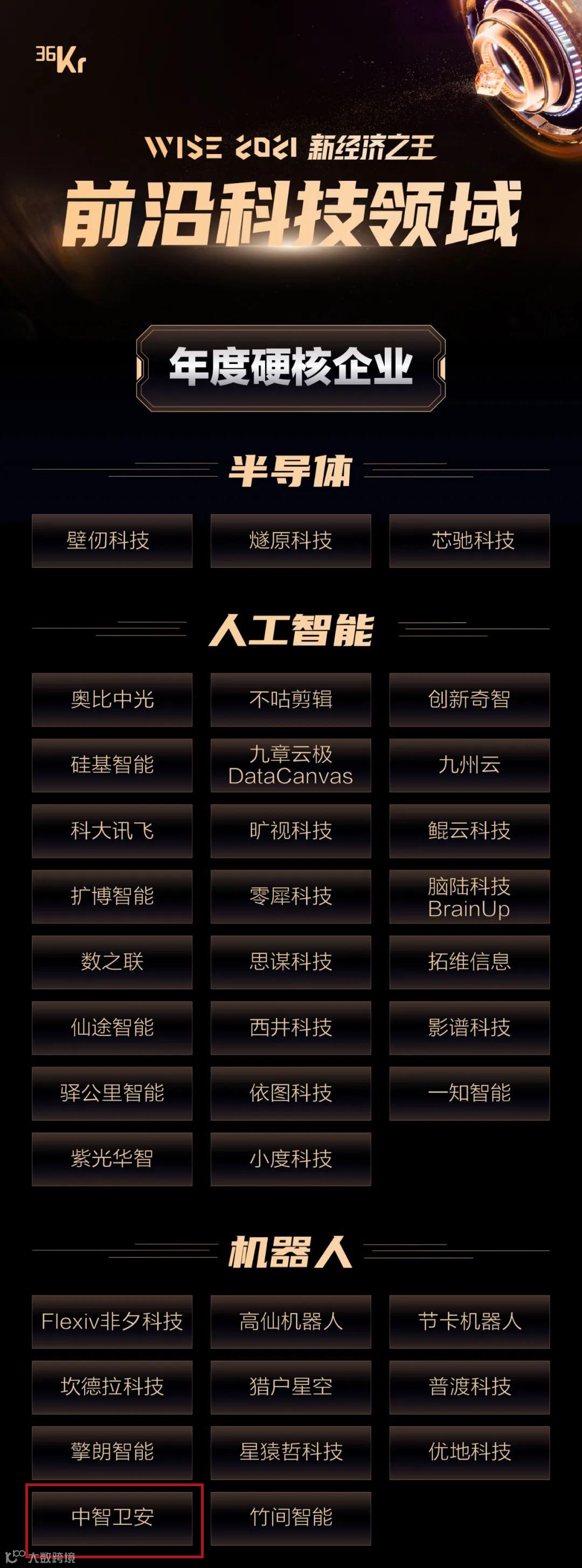 12月13日,36氪发布“2021新经济之王”年度硬核企业榜。凭借大规模和成熟商业化应用的产品及服务,中智卫安在激烈竞争中突围,实力斩获前沿科技领域“年度硬核企业”荣誉。科大讯飞、小度科技等企业也榜上有名。