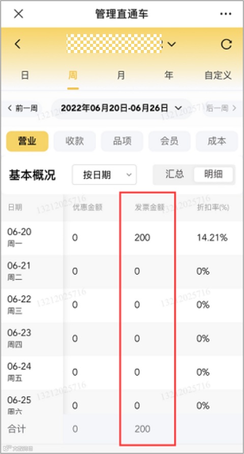 用户在查看门店营业数据时会关注门店的发票金额,本期进行优化。