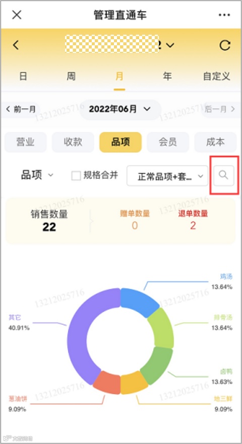 在品项数据页面中查看数据时,想要查看某个单独品项的销售情况,现状不支持搜索。