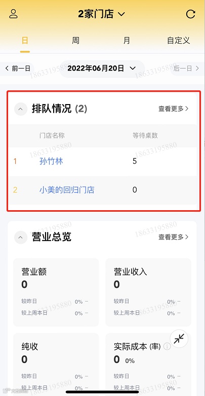 使用吾享排队系统的门店管理者可以在直通车上查看实时排队情况。