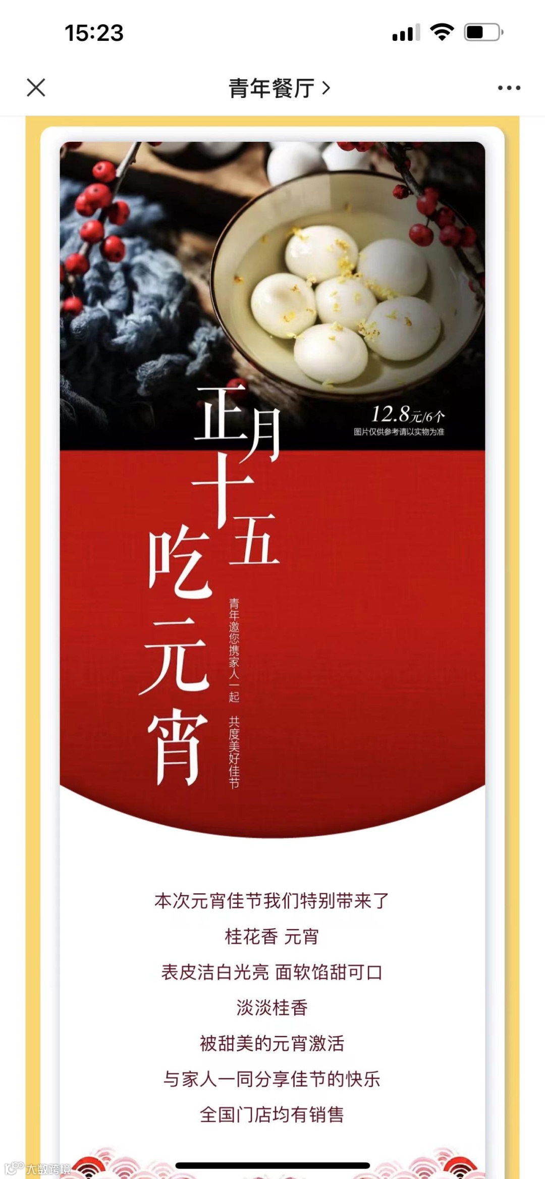 今年立春和元宵节差一天,可以结合去做,也可以单独去做。可以提前售卖年货元宵礼盒,在商城和小程序外卖上售卖;也可以再门店赠送汤圆或者送汤圆,体现中国传统节日。