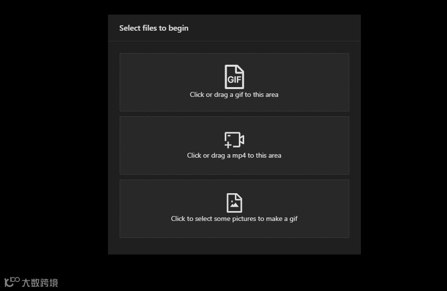 方法使用简单,选择蓝色run按钮后,就进入转换页面,从上到下分别是拖动gif、mp4、图片进行转化。