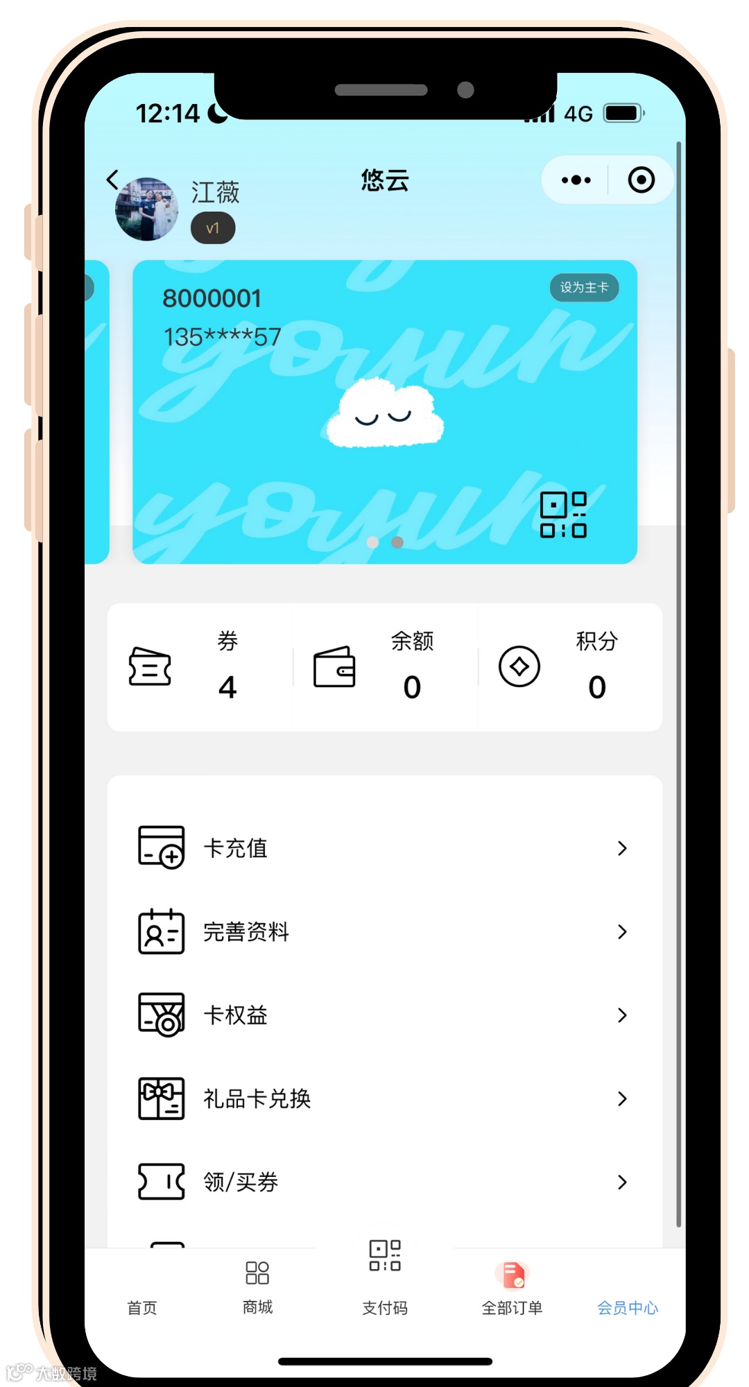 卡主页的设计也非常全面,长图文的形式将会员卡升级、储值、积分商城、社群、幸运大转盘等多种营销玩法都囊括在内,条理清晰便于顾客针对性查找自己所需服务。