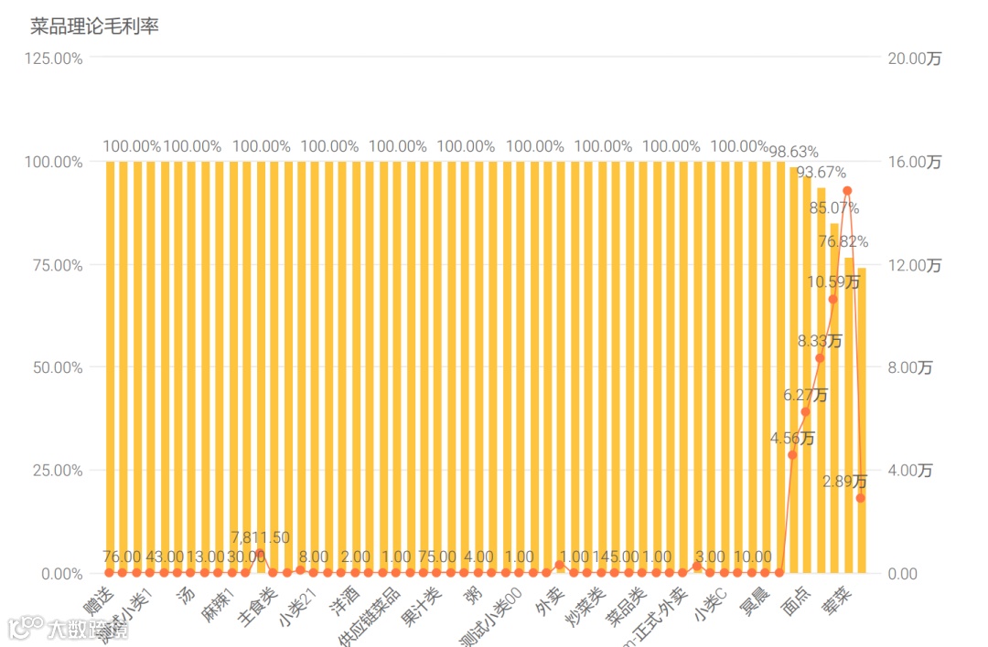 查看各个菜品理论毛利。理论毛利与毛利率的波动通常与采购单价及销售结构有着密切关系,企业的管理者能快速查看盈利状况。