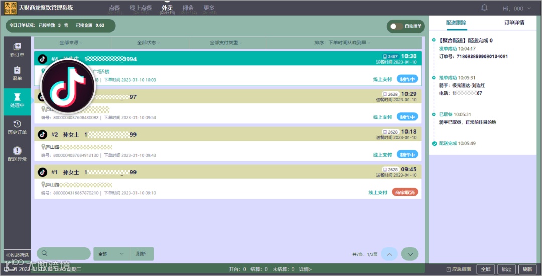 基于此,天财商龙完成了与抖音外卖的迅速对接,为餐饮企业在外卖营收领域拓宽经营渠道!